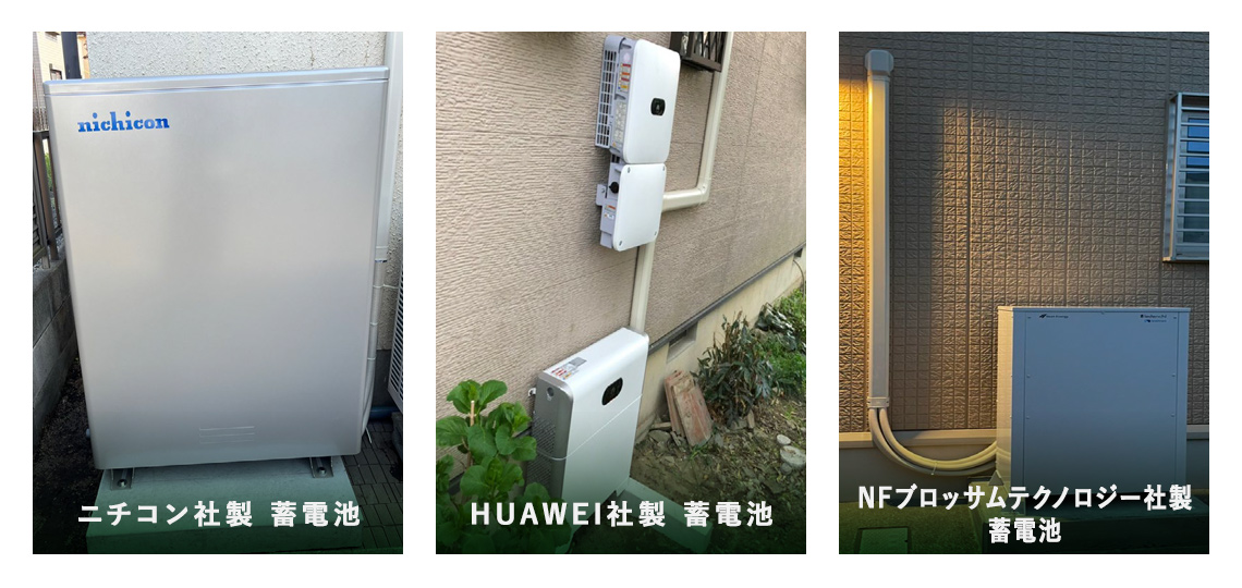 (XSOL、ニチコン(セパレート、一体化型、V2H)、オムロン、長州産業、シャープ、京セラ、スマートスター、スマートソーラー、 住友電工、パナソニック、DMM、Tesla、SolaX他)